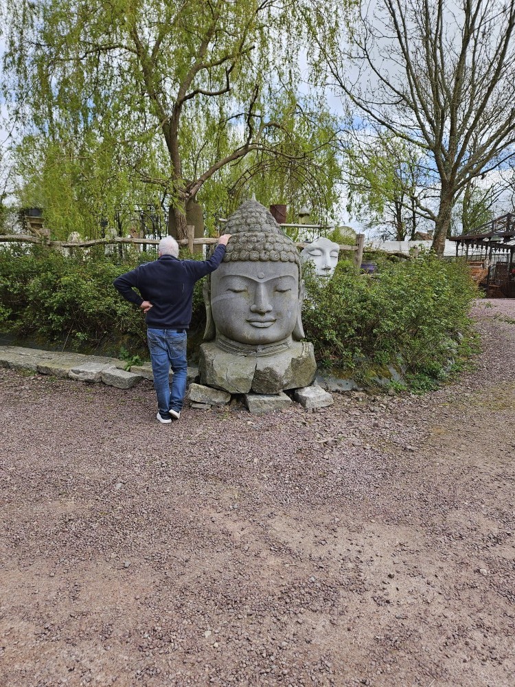 Apportez une touche d'authenticité, de sérénité et d'art sacré à votre espace avec cette magnifique tête de Bouddha, taillée dans la pierre. Sa présence imposante et son expression paisible invitent à la contemplation et créent une atmosphère de calme et de spiritualité. Une pièce maîtresse pour votre jardin, votre cour, ou même comme élément architectural original. ✨