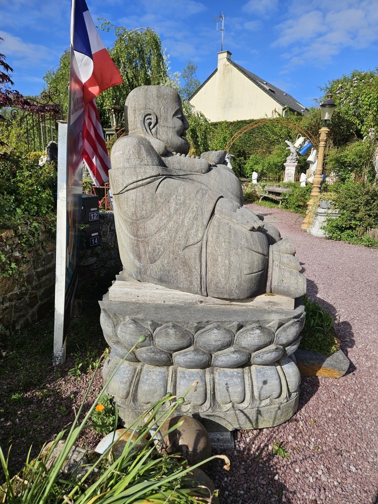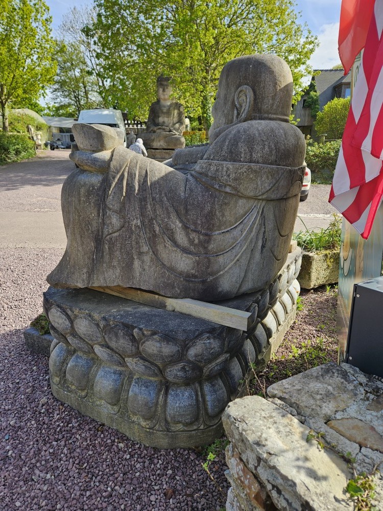 Sculpture imposante et magnifique d'un Bouddha en granite, pesant environ 10 tonnes. Cette pièce majestueuse est parfaite pour créer un espace de sérénité et de zen dans un jardin, une cour, ou comme élément architectural unique.