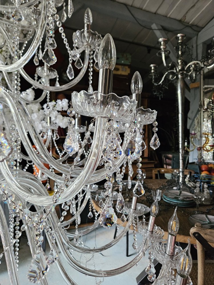 Magnifique lustre majestueux avec ses pampilles scintillantes, pièce maîtresse d'exception pour un intérieur grand standing !